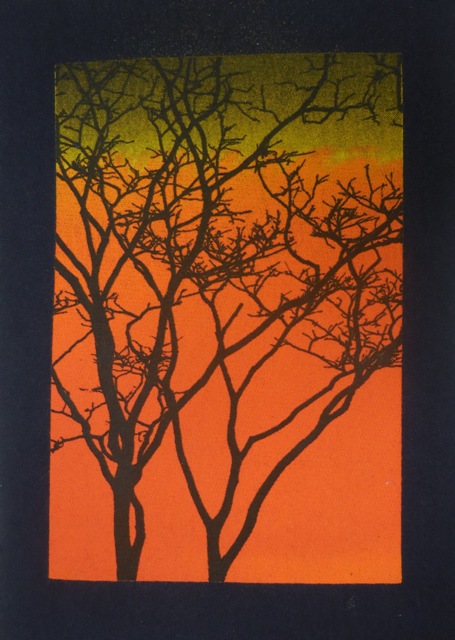This discharge print, which has a velvety effect is created by printing four colour with a single stroke and cured at 160 degree celcius for three minutes