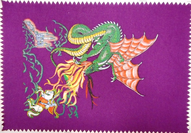 Printing process: Colour printed by three strokes and flashed cured. Then overprinted with foil adhesive. Finally multi-coloued foil is placed on top and fused at 120 degree celcius
