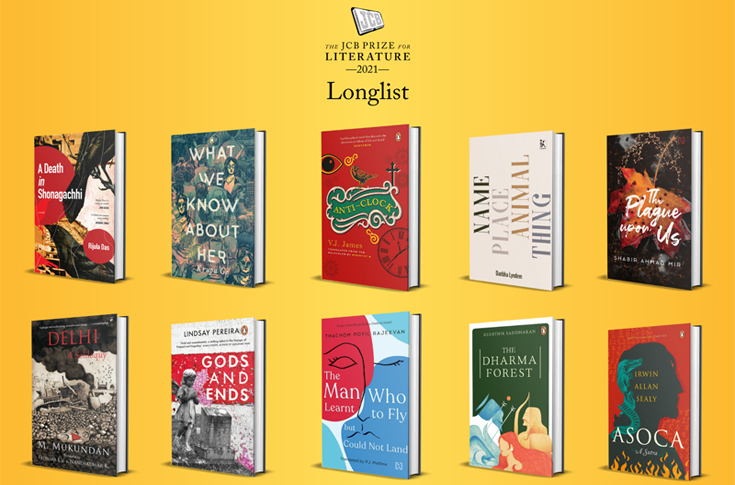 The 2021 longlist is: A Death in Sonagachhi by Rijula Das (Pan Macmillan); What We Know About Her by Krupa Ge (Westland); Anti-Clock by VJ James, translated from Malayalam by Ministhy S (Penguin Random House India); Name Place Animal Thing by Daribha Lyndem (Zubaan Publishers, 2021); The Plage Upon Us by Shabir Ahmed Mir (Hachette India); Delhi: A Soliloquy by M Mukundan, translated from Malayalam by Fathima EV & Nandakumar K (Westland); Gods and Ends by Lindsay Pereira (Penguin Random House India); The Man Who Learnt to Fly but Could Not Land by Thachom Poyil Rajeevan, translated from Malayalam by PJ Mathew (Hachette India); The Dharma Forest by Keerthik Sasidharan (Penguin Random House India); Asoca by Irwin Allan Sealy (Penguin Random House India);