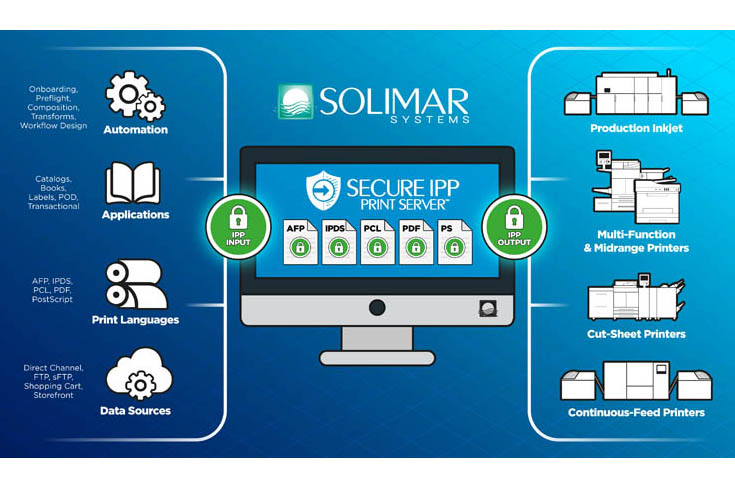 “The launch of Secure IPP Print Server is in direct response to our clients’ requests for help to better secure digital content and documents in transactional and variable data print workflows,” Mary Ann Rowan, chief experience officer at Solimar Systems, said. “At present, printing is too often vulnerable to gaps in end-to-end security. This print server can run as an automated, ‘lights out’ service, securing incoming and outgoing print data, providing governments, enterprises and print service providers around the globe with additional confidence in the security of their production processes.”