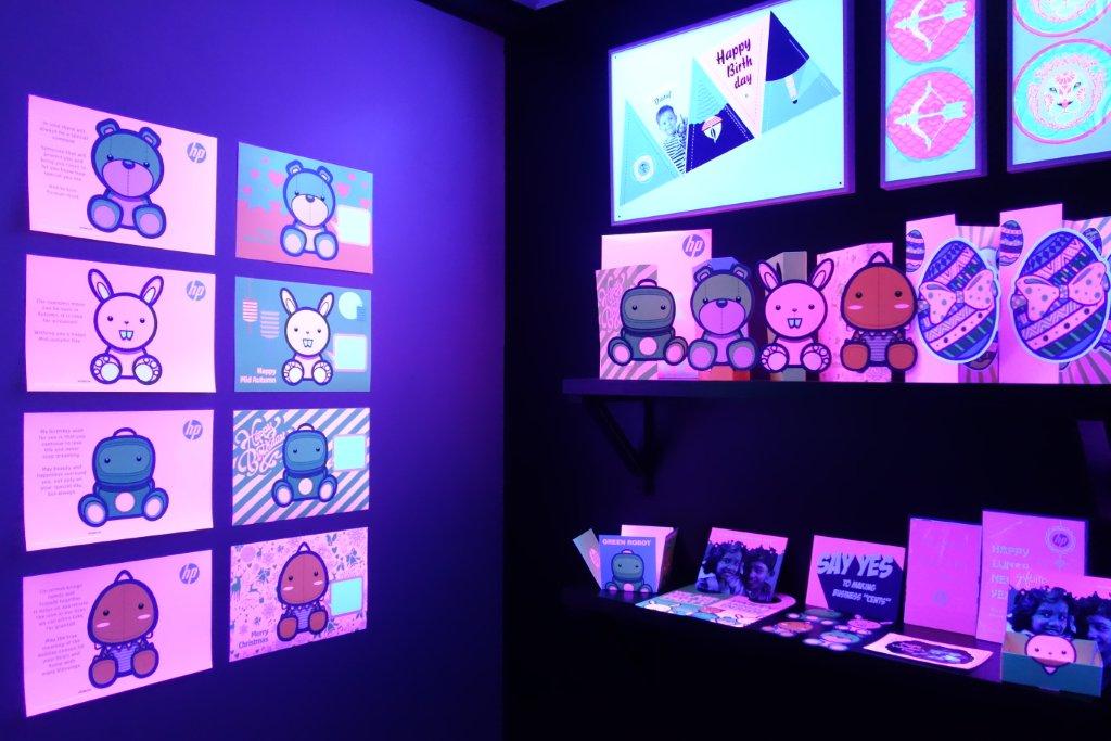 The pink room at the COE housed products printed with special HP Indigo ElectroInk Fluorescent Pink, which glows in the dark under UV light. Many such inks are still under development, which HP hopes to roll out in 2017