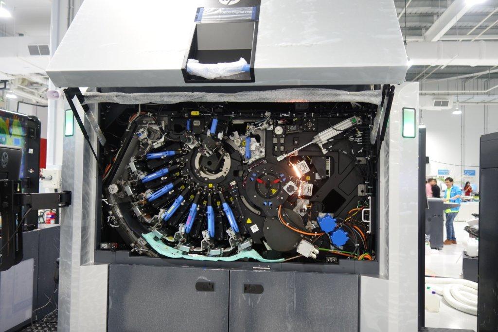 The highlight at the HP facility is a peek into the new generation of inks for the HP Indigo 10000, 20000 and 30000 digital presses. Here Eitan demonstrating the applications of HP 20000