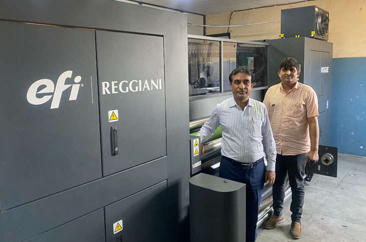Payal Fashion has been in embroidery business. “We have our business spread all over India and are well-known for our quality and standards. We had purchased our first EFI Reggiani Vogue in 2019 after evaluating several suppliers and manufacturers, and after talking to Arrow, we knew we would be safe to plunge into digital with their support. We are satisfied with the product and the services Arrow has provided during these years. It gives us immense pleasure to have installed the latest version of EFI Reggiani, an eight-colour printer with 16 printheads, using EFI-AQUA premium reactive inks, which we have consistently used against even after evaluating other inks. We are excited to rock the market with our second digital machine,” Budhabhai Sonani of Payal Fashion said.