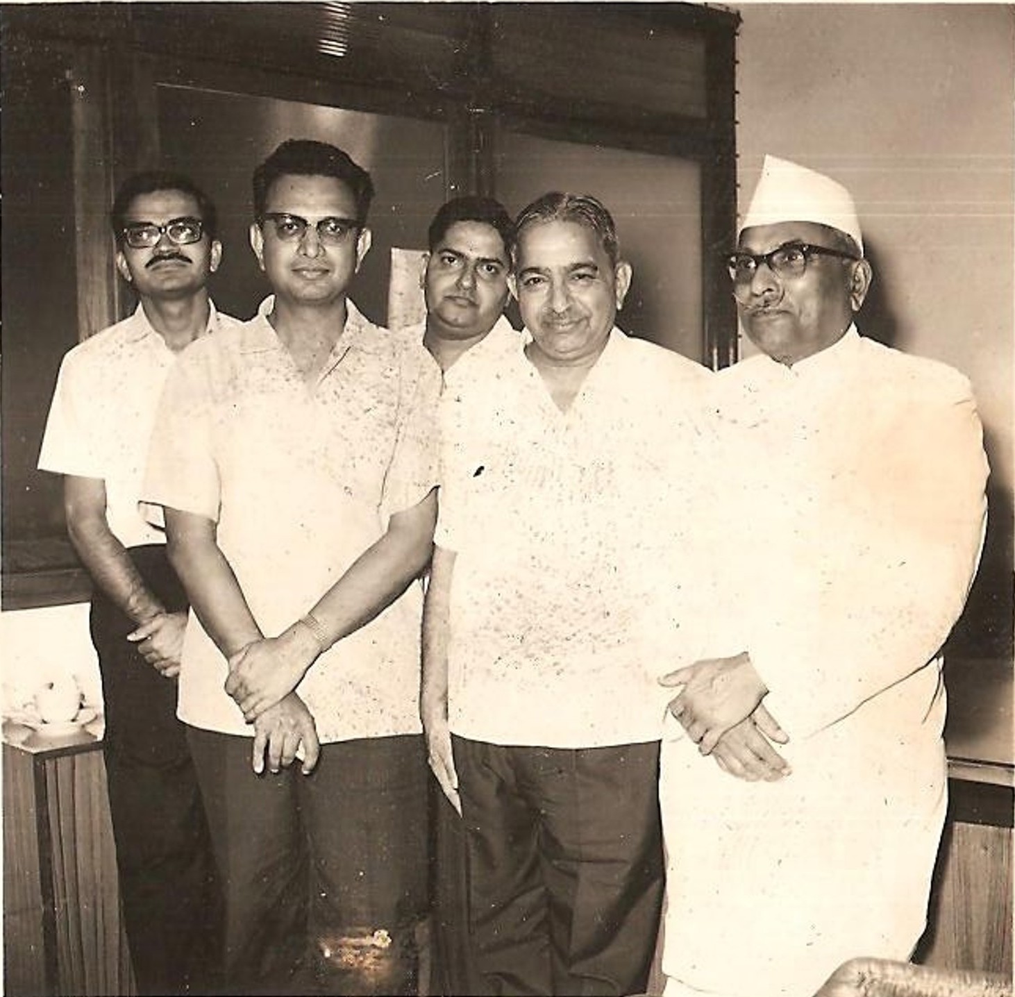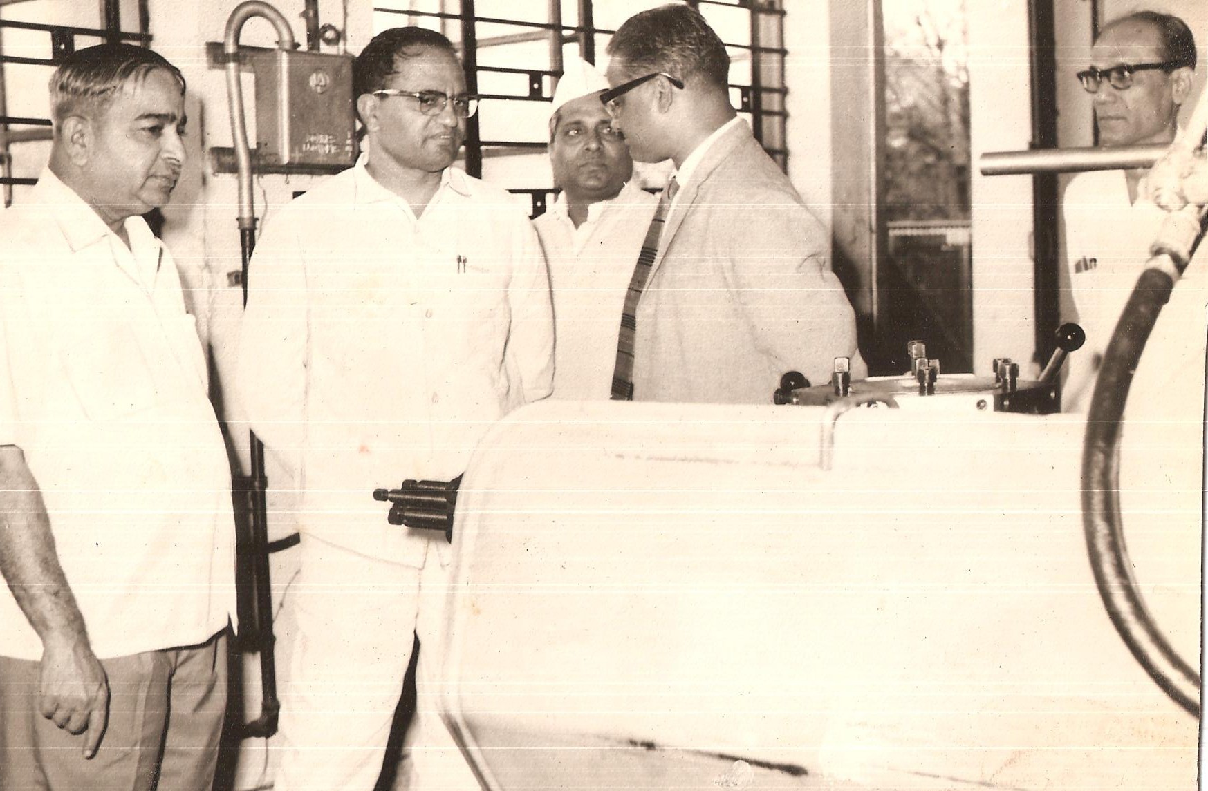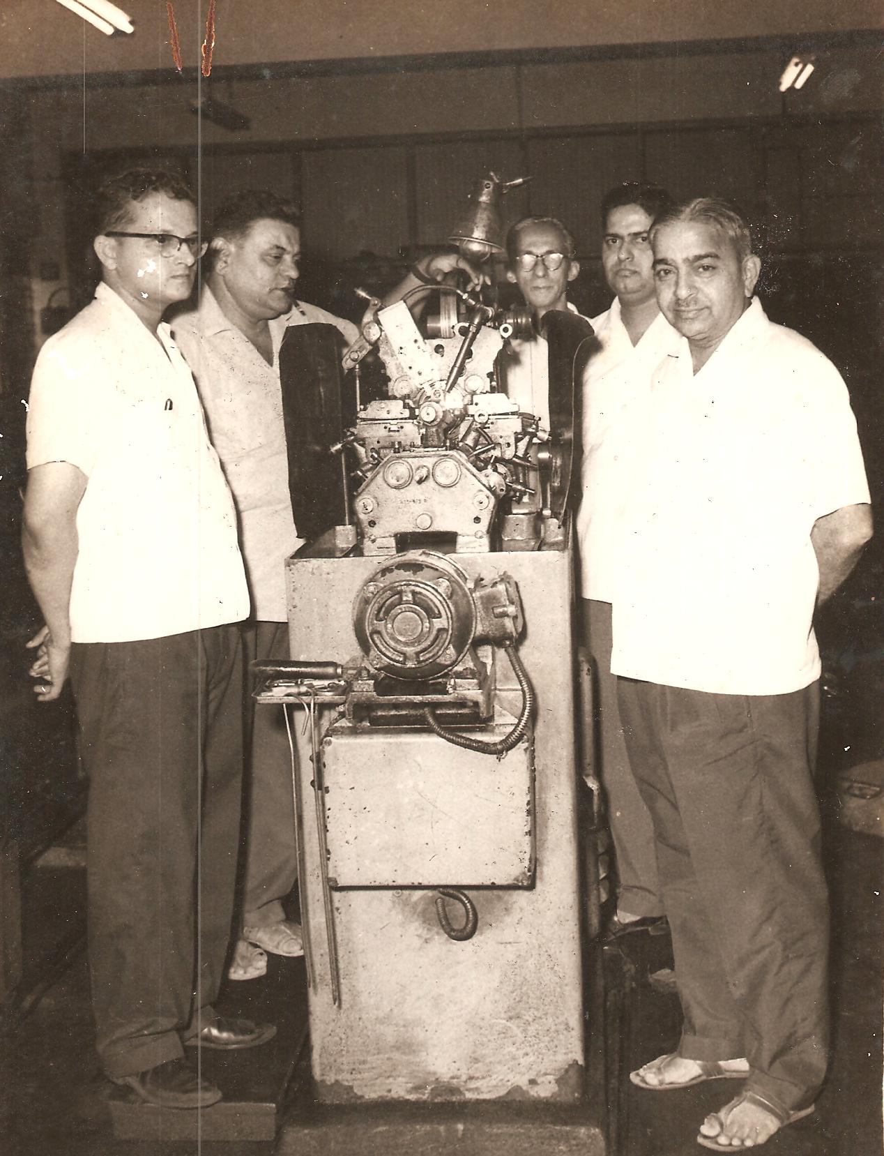 The second generation of the Marathe family, Sureshbhau Marathe (second from the right) showing the Swifts 150 to a leading businessman of the time