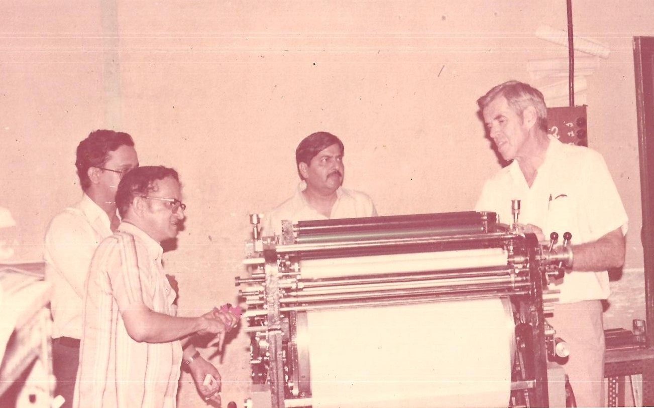 Swifts team at the PrintPack India in 1998. Swifts joined hands with AM Multigraphics USA in a bid to jointly manufacture the famous Multilith 1250 machines in India