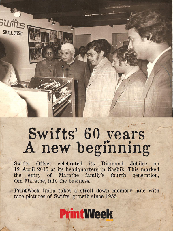 Swifts Offset celebrated its Diamond Jubilee on 12 April 2015 at its headquarters in Nashik. This marked the entry of Marathe family’s fourth generation, Om Marathe, into the business.