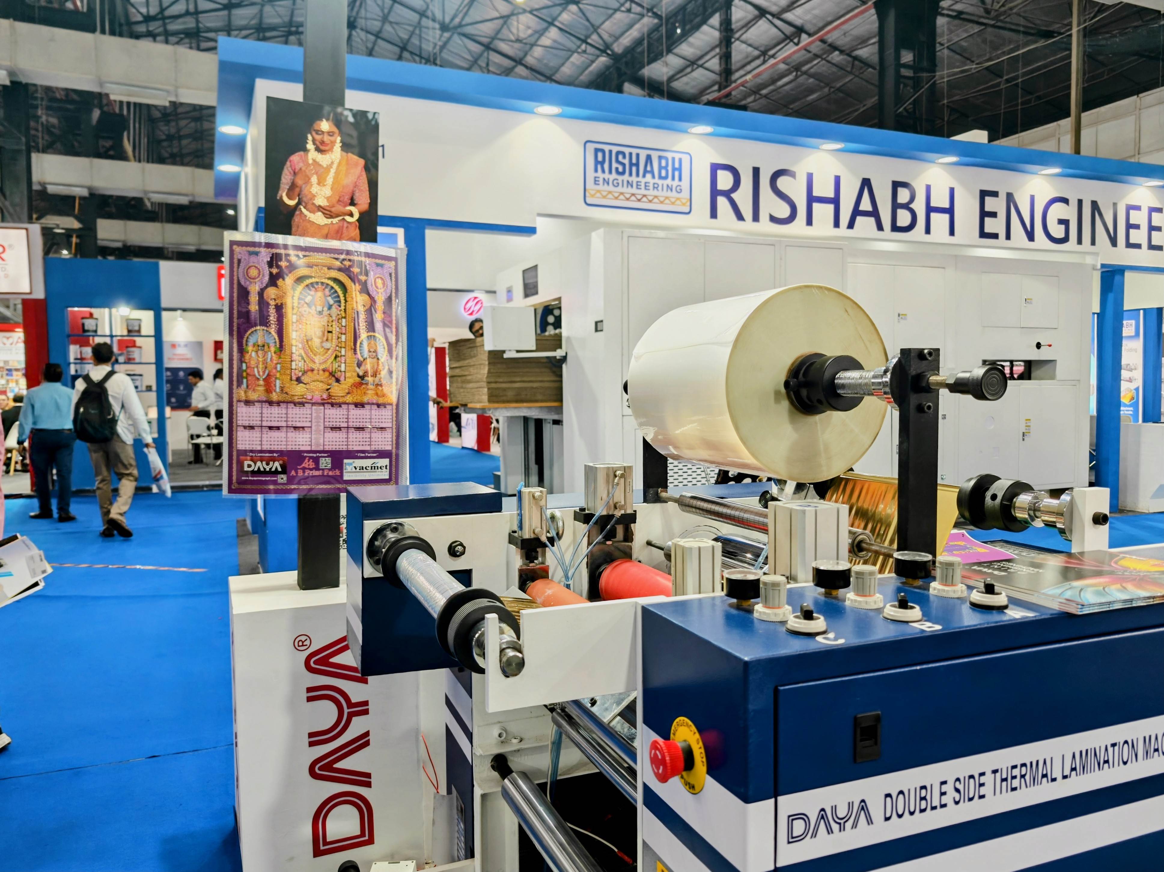 That trend gathered pace. Ashwin Enterprises sold its newly launched Sprinter SVE-906, a next-generation spot UV coating and print enhancement machine capable of 3D raised spot UV and foiling effects, to Delhi-based Baba Graphics. The finishing momentum continued with Creofoil, which sold a total of nine machines, including fully automatic screen-printing systems with UV dryers and foilers to Sainath Polylam and Bhuma Print & Pak.