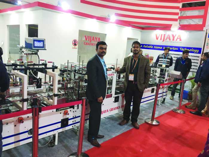 Delhi-based manufacturer of foldergluer Vijaya Grafiks has announced the sale of two folder-gluers to Deharadunbased SS Industries and Haridwar-based Sai Ram Printers. The machine displayed at the show will be installed at SS Industries’ Dehradun plant whereas the machine for Sai Ram Printers will be supplied subsequently