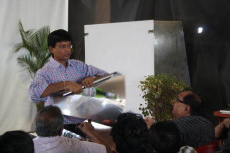 Rajgopal explaining how plastic substrates can be printed using screen printing technology