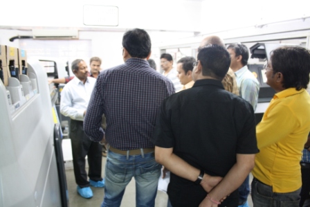 Delegates looking at the print samples and were surprised to know that a Rs 40,000 per kg ink is what defines printing