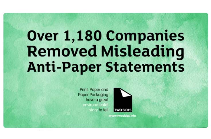 Two Sides said its anti-greenwash campaign continues to be a priority for the organisation, and it will continue to urge companies to reject the use of unsubstantiated and misleading environmental claims about going paperless in all of their communications.