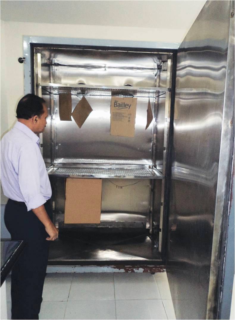 The humidity chamber conditions the samples to be tested at 65+/-2% relative humidity and 27+/-2 degree celsius temperature prior to testing. This is inline with the FCBM standards for corrugated box testing.