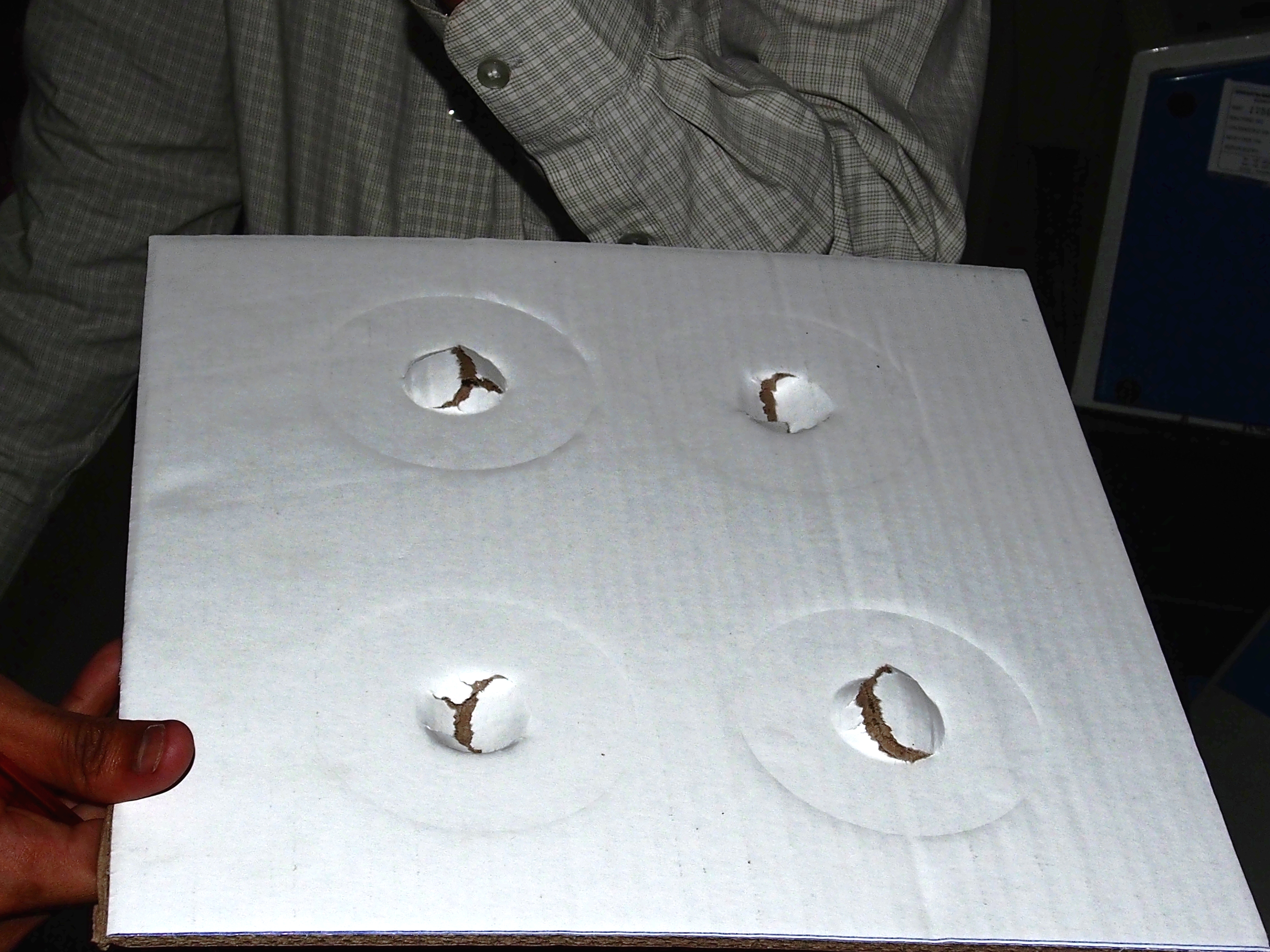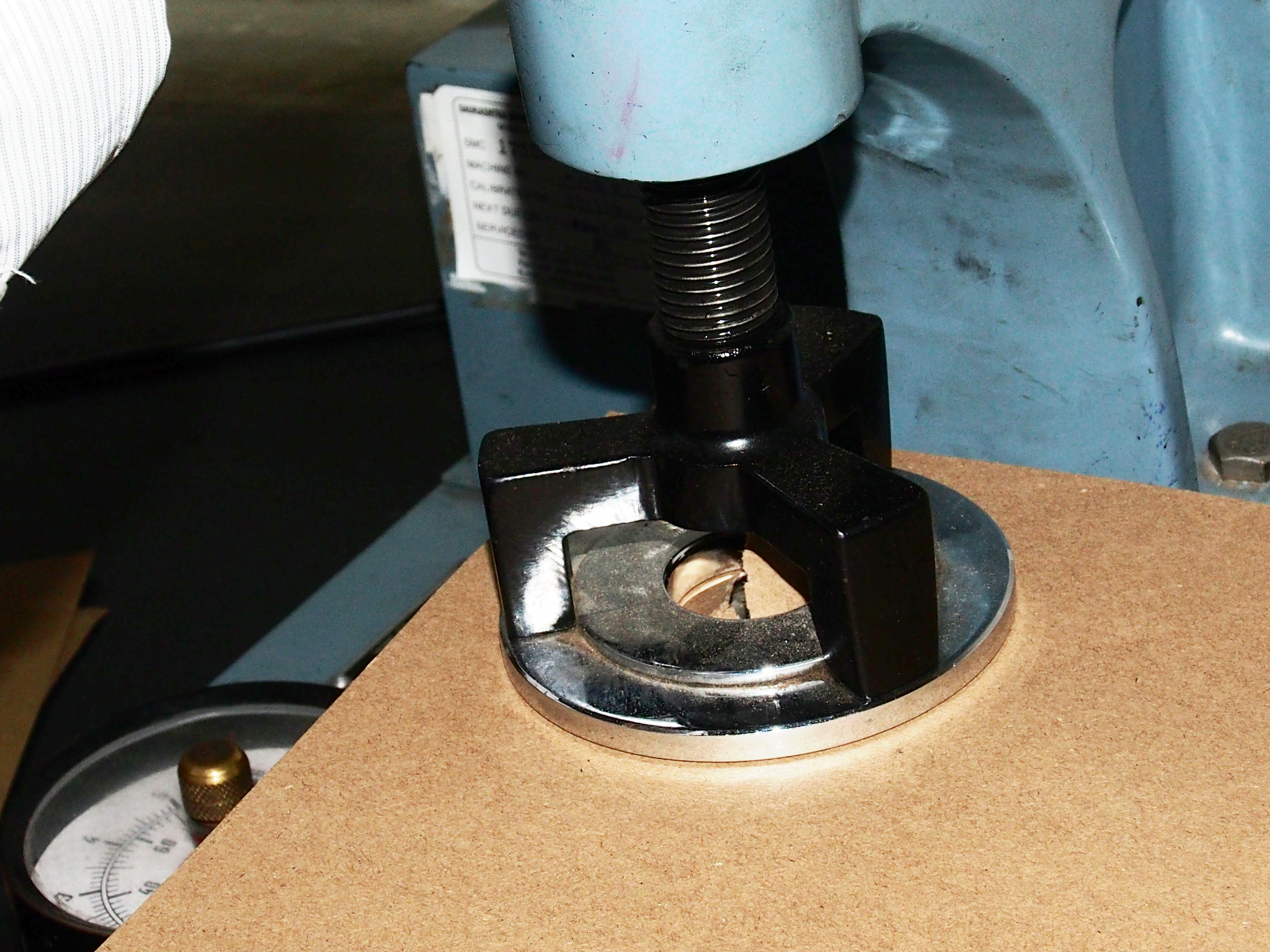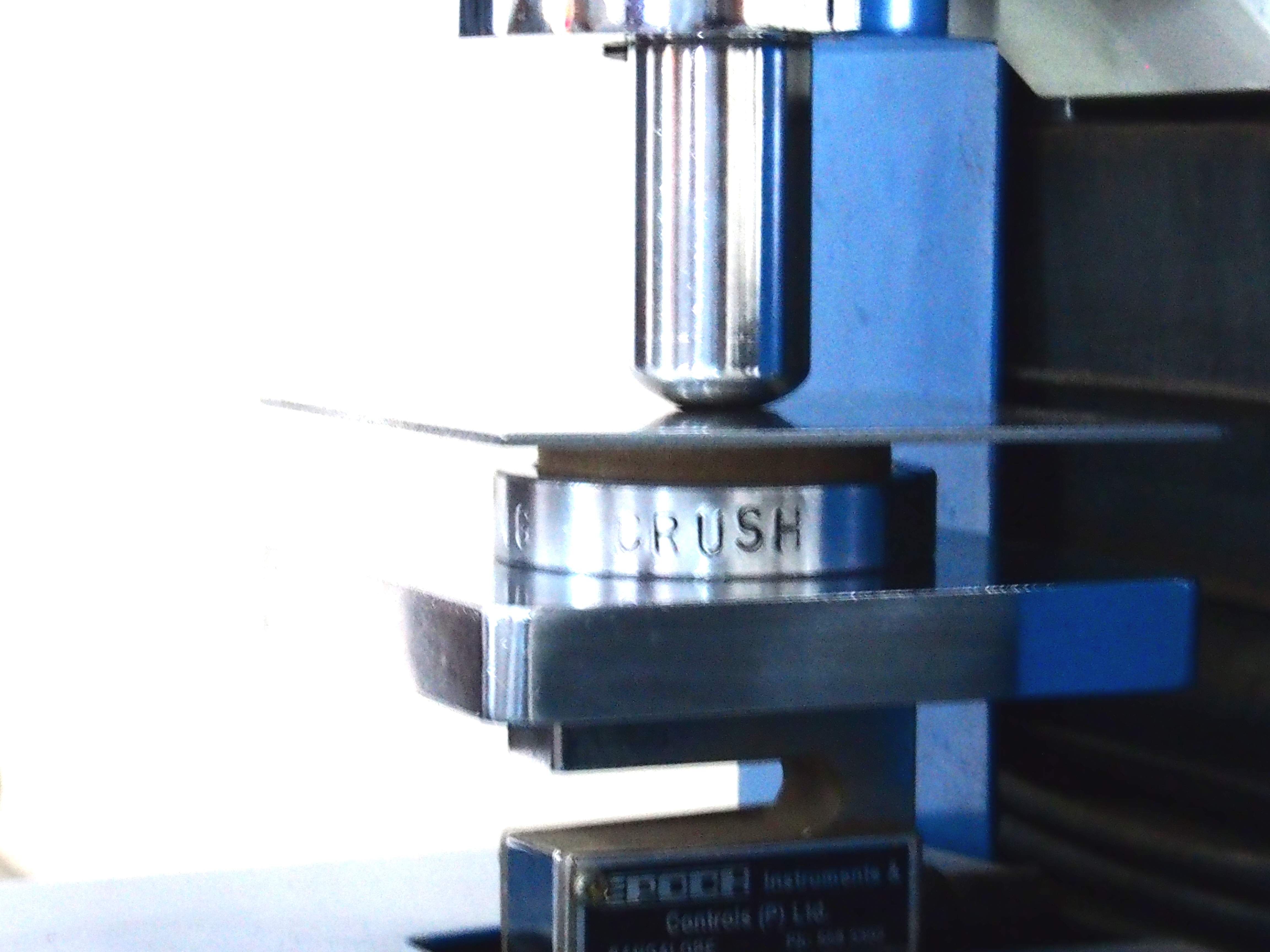 In the picture is a puncture resistance test in progress. It measures the energy required to punch through a corrugated board.