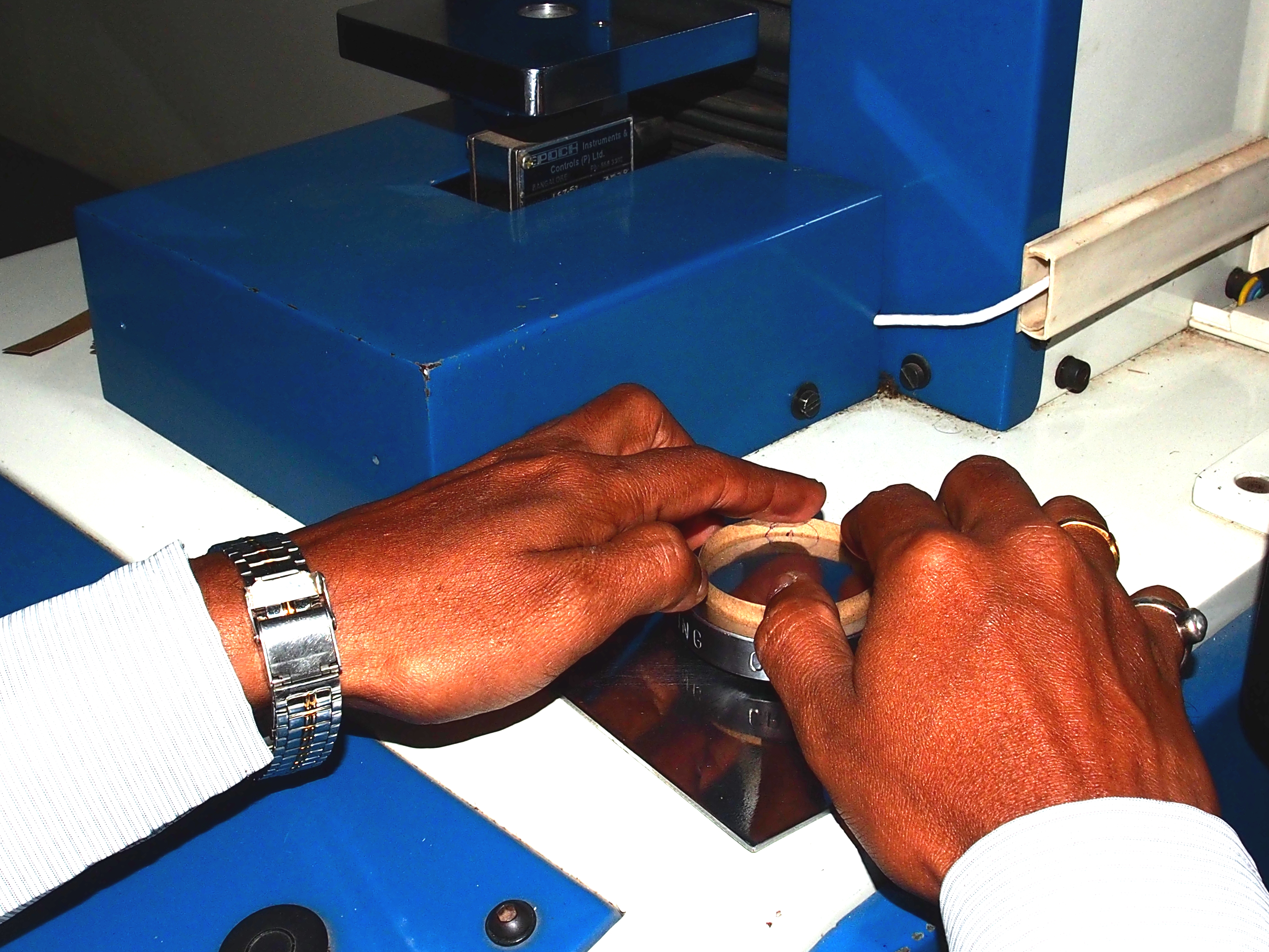 The samples are held in a ring shape by a special holder and a load is applied to the ring until the sample buckles.