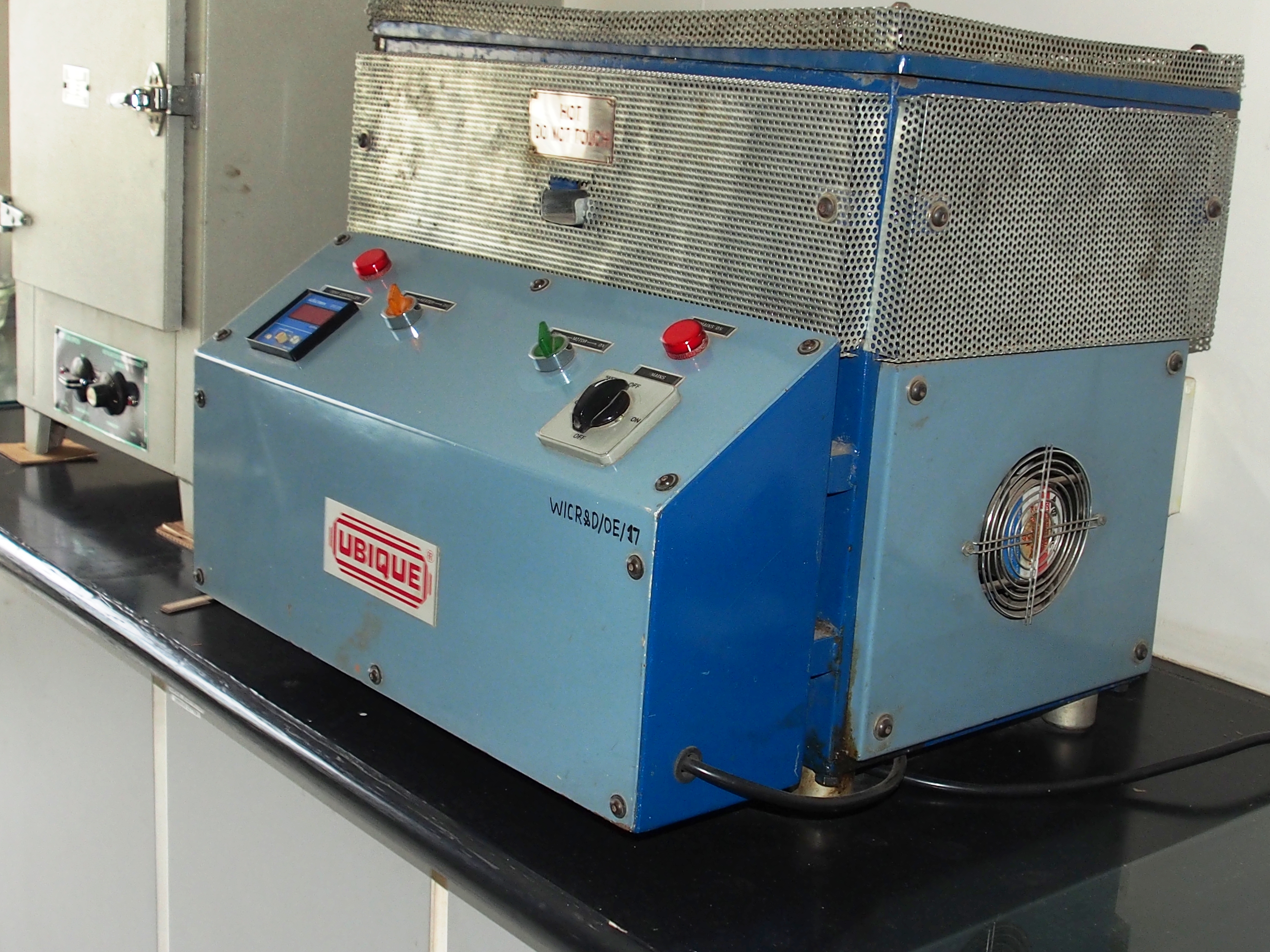 A temperature regulated, air ventilated oven, tests the moisture content of paper and boards and solid content of adhesives.