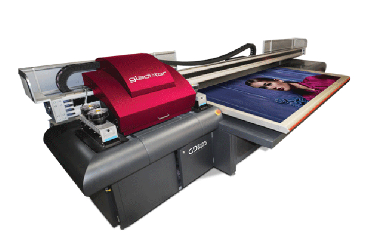 Gandy Digital has been offering the Domin8tor and the Pred8tor flatbed printers for the last seven years. It comes in two sizes. Gladi8tor “2” has a 1.22x2.44-m print size and Gladi8tor “3” comes with a 2x3.05-m print size on a vacuum table. With Nanodot technology, it has a unique blade design for print heads, removing the Y axis calibration of dot placement entirely and this assures very high accurate dot placements. Both models can have a roll-to-roll attachment either 2.44-m or 3.05-m wide.