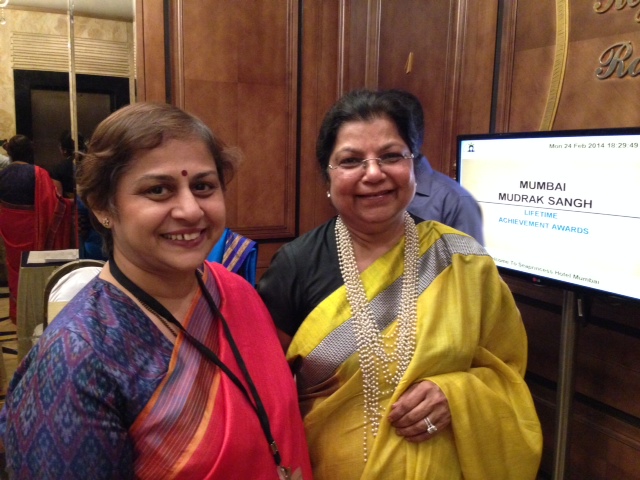 Amila Singhvi received the Life Time Achievement Award, the highest accolade from the MMS, for her dedicated service to the print industry. Chief guest, Avinash Dharmadhikari, a renowned activitist, ex-IAS and freelance journalist, honoured Singhvi with the Award.