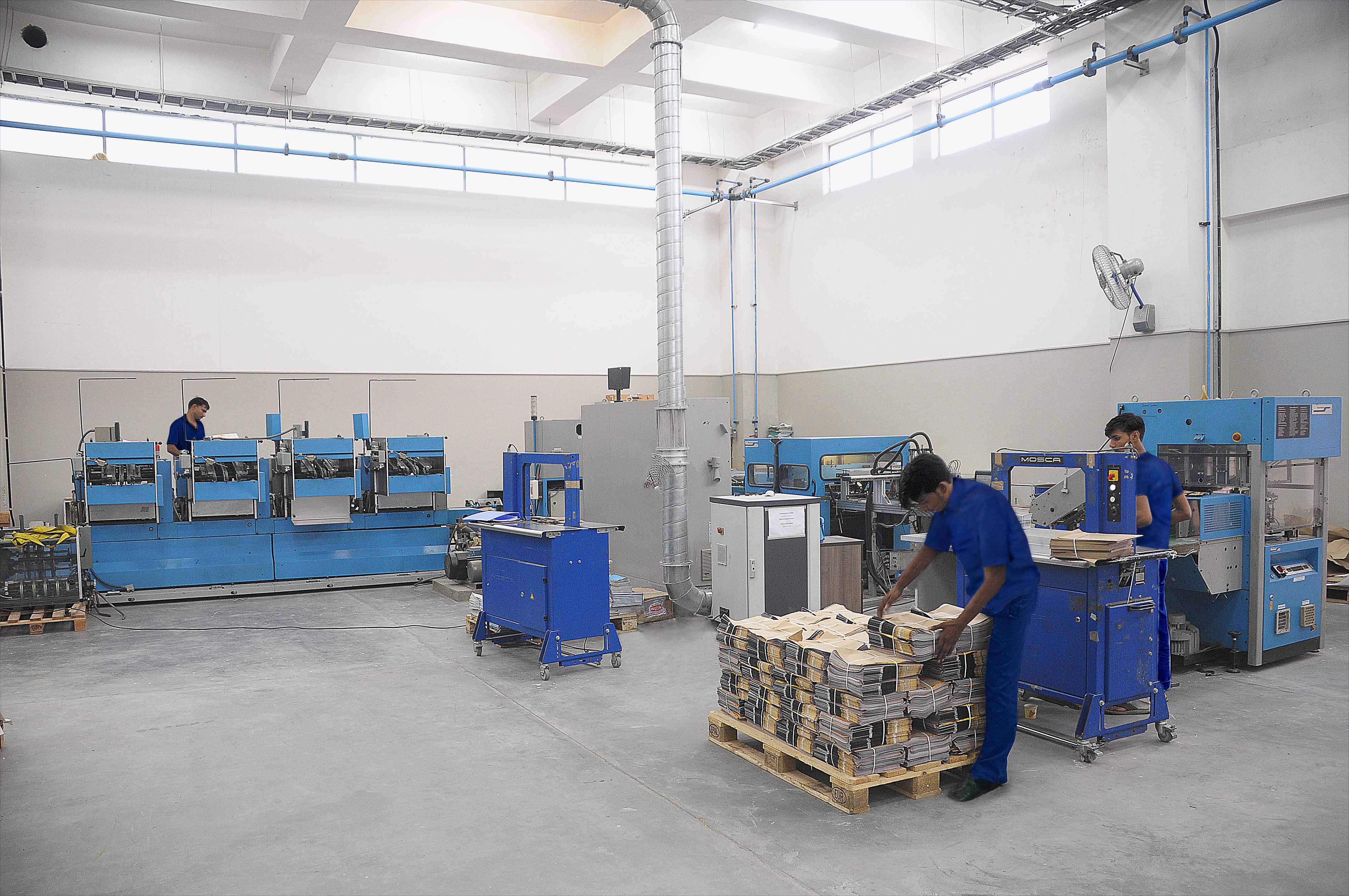 The factory can convert upwards of 35000 tonnes of paper. Other than textbook orders, the Burda team also services 60 international and 18 domestic magazines