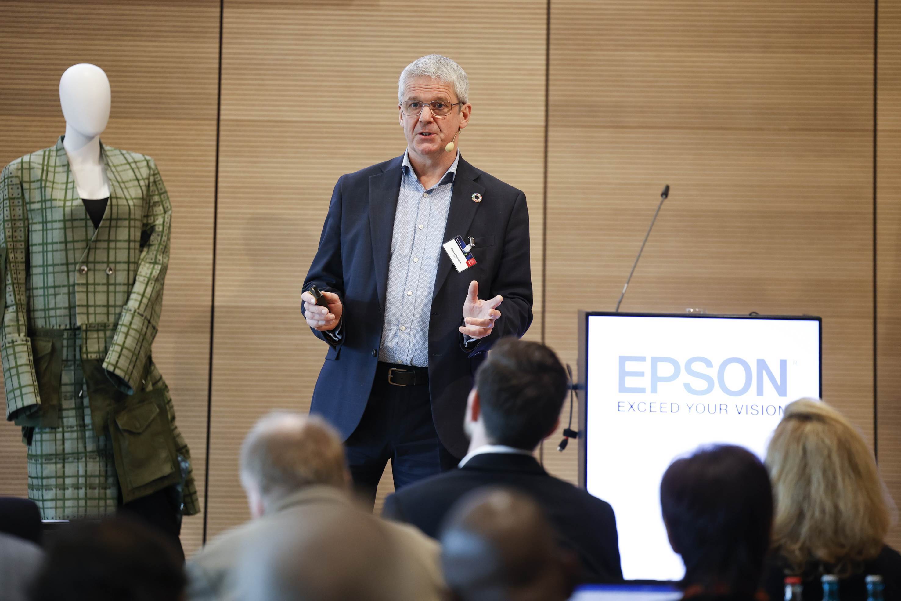 Furguson also revealed future developments, including support for more sustainable fashion using Epson's unique Dry Fiber Technology (DFT), which produces highly durable printable fabric from used garments without water. The renowned Japanese fashion designer Yuima Nakazato is using DFT to experiment with batches of cotton, polyester, and silk and plans to commercialise his range in 2024. Some examples of fashion items made from dry fibre fabric were on display during the presentation.