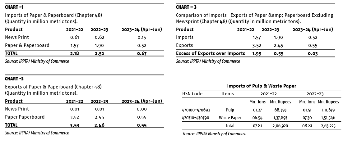 The true comparison of imports and exports of paper and paperboards excluding newsprint (being under Newsprint Control Order (NCO) 2004) is given below: