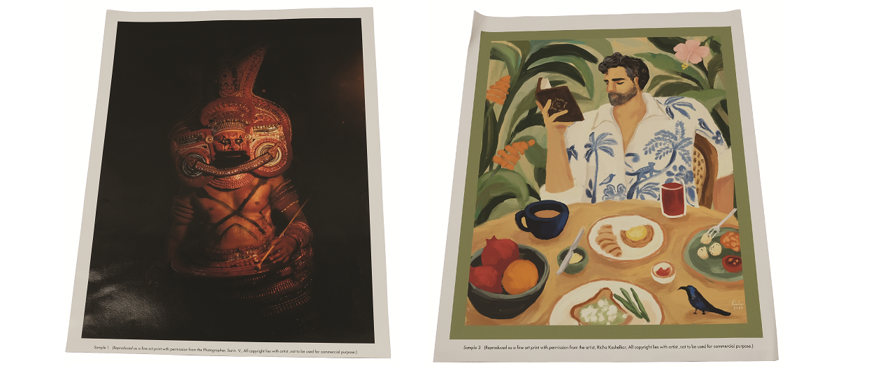 The 2023 edition of the Awards saw joint winners. The first was Mumbai-based Nisarga Works. The company submitted prints of Theyyam Festival by Sarin Vachal; Limited edition prints of original art by Sudarshan Shaw; print and drop ship for Indian artist, Richa Kshelkar; and The Aksa Collection for Craig Boehman.