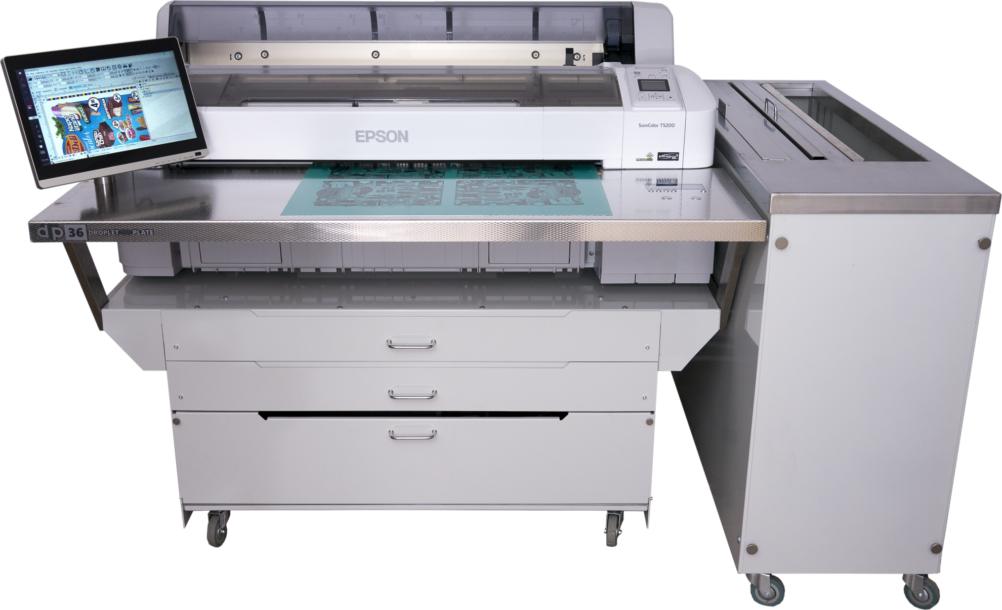 StudioRIP DTP is an inkjet CTP system which creates conventional aluminum offset plates using inkjet printers. While its quality is very similar, its price is a fraction of the conventional laser CTP machines. With the StudioRip software, the company will utilise the existing stand of the Epson SureColor T5405 printer and attach its plate positioning system to it. The UV exposure will be a separate, optional module, and the plate processor will be fully automated. These systems will be controlled through 3.5-inch touch screens with a user-friendly graphical interface.