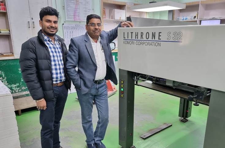 “Since we were satisfied with our first Komori press, we wanted to add a second machine, a bigger, upgraded, and five-colour press. So, we went for the five-colour Komori Lithrone G40 with coater in 2020,” Jain says.