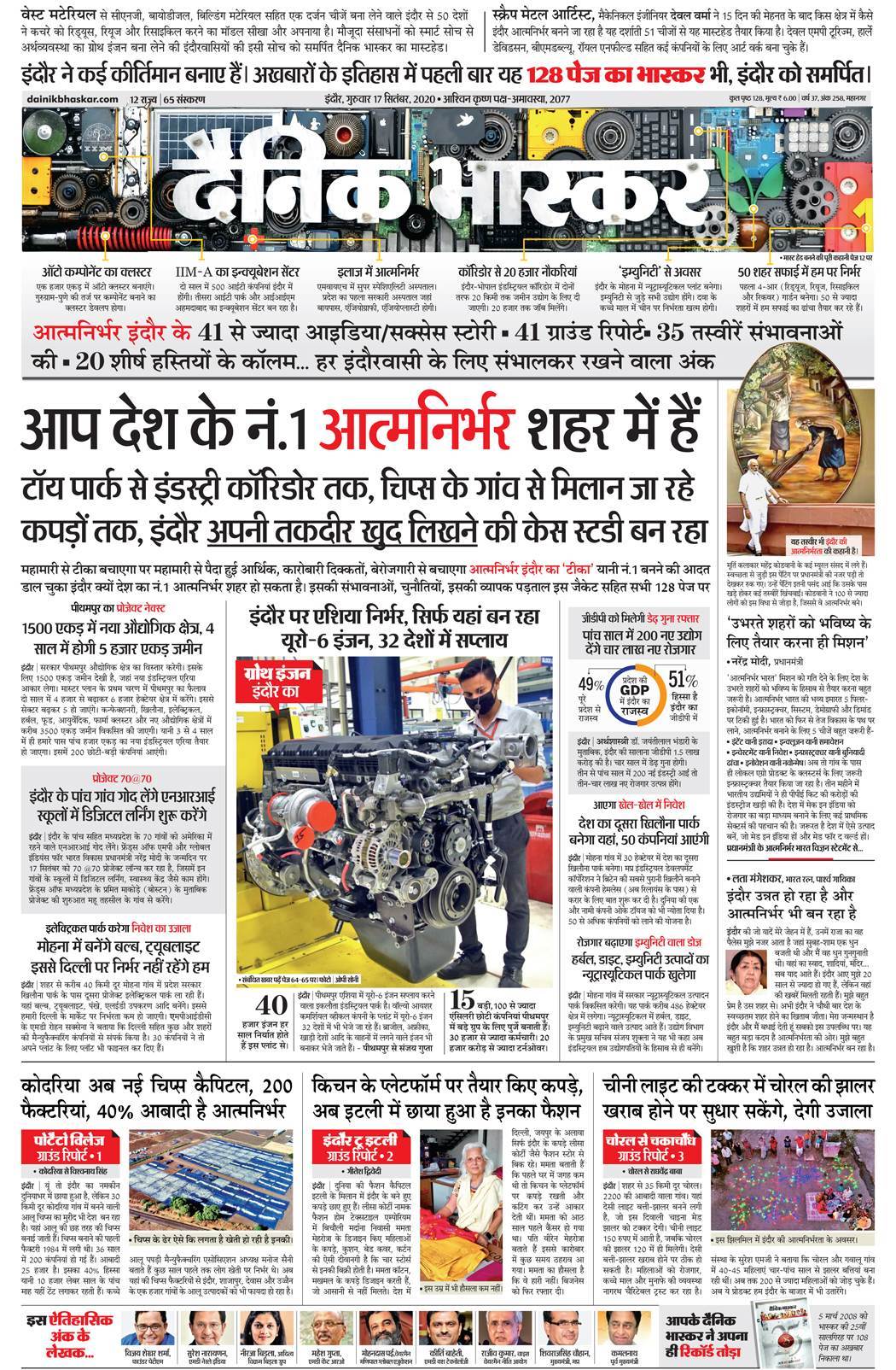 On 17 October 2020 DB published 84-page newspaper issue in Khandwa
