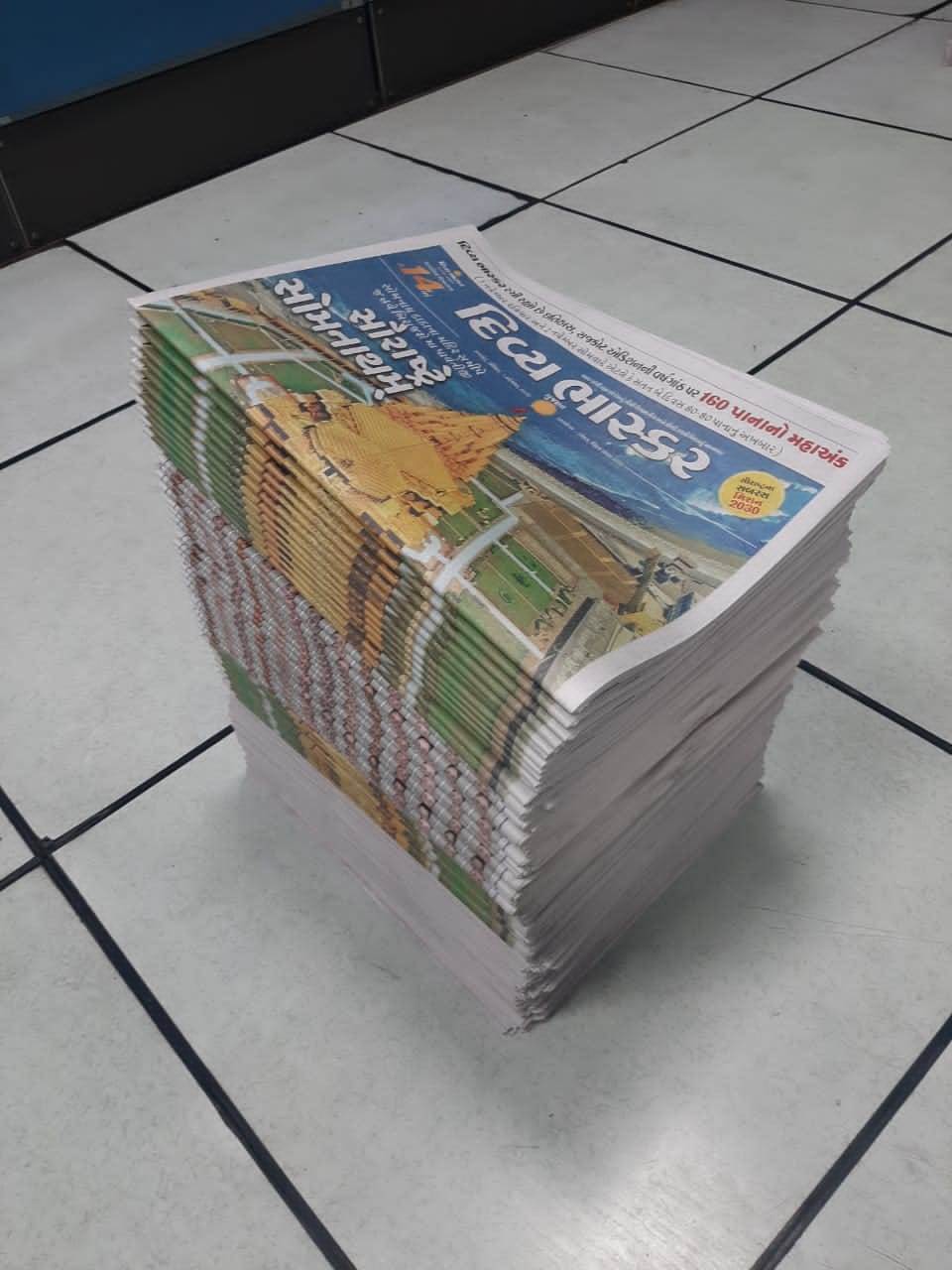 Design element for the special edition (Colour pages / any special print element): It was Rajkot unit's Anniversary issue - 160-page mega edition (80+80 on 2 November 2020, the subsequent day). It included two super panoramas, 8-page each. All the products were packed in a clear poly envelope online for distribution.