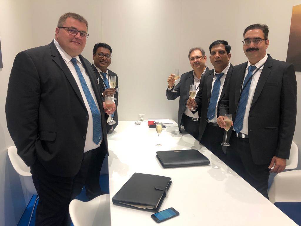 Team Gallus with Mudrika’s Manish Desai (third, right) after signing the Gallus ECS 340 deal