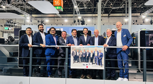 Dr Andreas Plesske, CEO of Koenig & Bauer and Sandra Wagner, vice president of digitalisation, Koenig & Bauer, in conversation with Noel D'Cunha of PrintWeek, discuss trends, technology and the future of print and packaging at the company’s stand during Drupa 2024