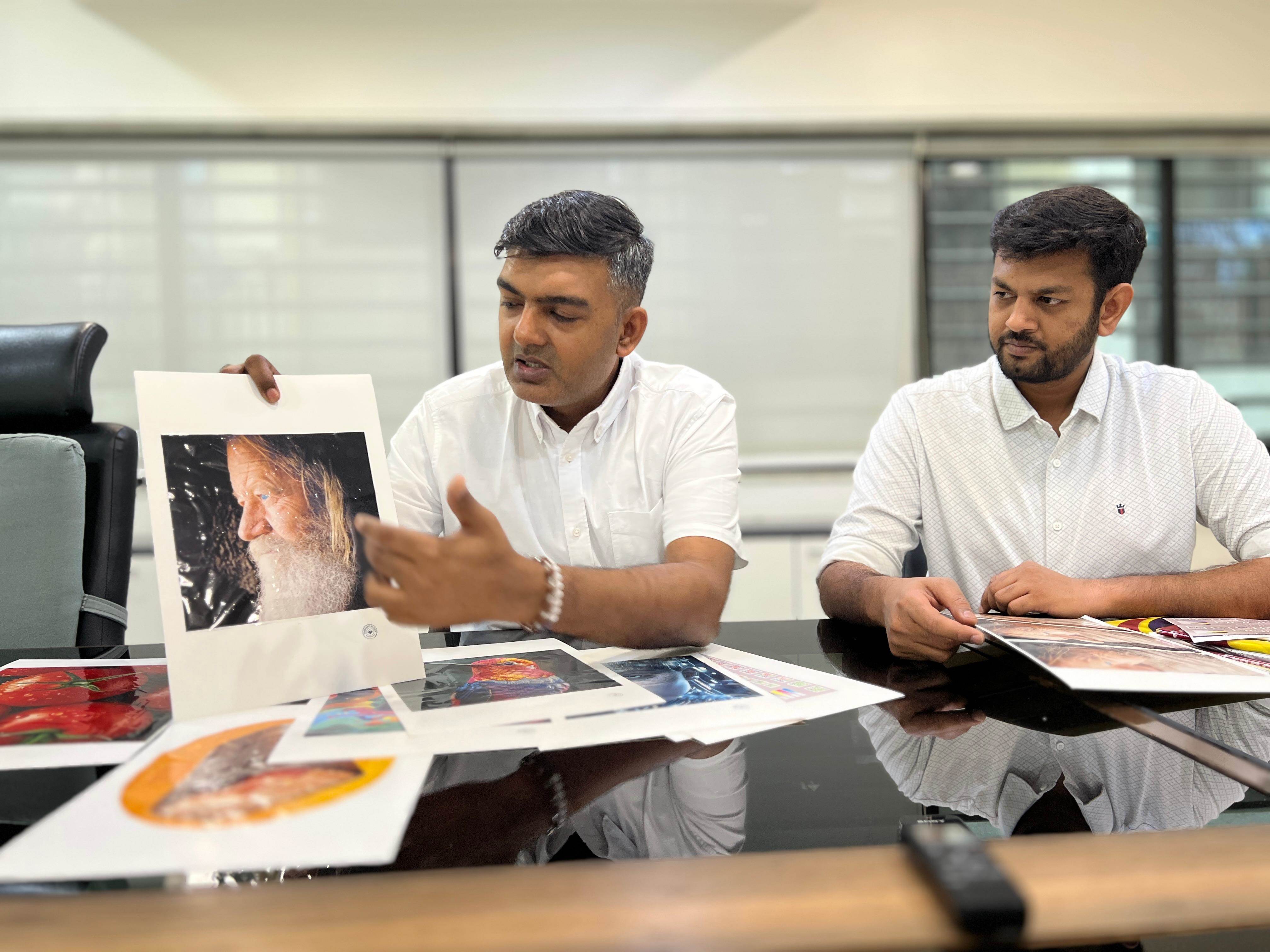 At Pin Mark, decision-making is always a collaboration, both within the company and with its customers. Minesh Bhai, with his extensive pre-press experience, continues to guide technical innovations, while Rutul and Urjit focus on customer needs and new applications. On the customer side, achieving the best print result often involves intense discussions between Pin Mark and printers, balancing technical feasibility with market demands. As Rutul puts it, “Printers want the best quality, and we push the limits of