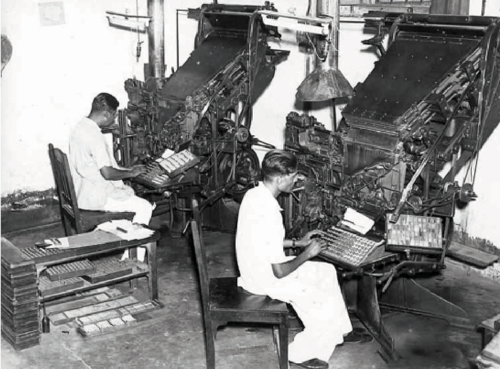 However, the Monotype department was housed in a separate single-storey structure next to the garages. Another smaller two-storeyed building housed the Maintenance Department on the ground floor. There was a canteen for employees on the upper floor. Next to it was a single-storey structure which housed the Machine Room and the Binding Department.