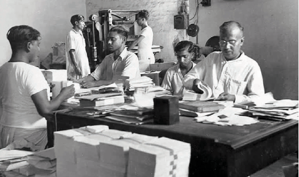 The Baptist Mission Press employed three hundred persons when it was operating at full capacity. Traditionally, the superintendents of the press were Britishers, perhaps with a background in printing but certainly with a strong Christian ethos. Many of them were lay preachers or deacons. Though they were technically qualified, they were paid the same low salary as missionaries. The rest of the employees, including all the departmental heads were Indian and had worked at the Press for decades. The Superintendent and his deputy stayed on campus in an attractive block of flats built in front of the main office block. When Norman Ellis became Superintendent in 1946 and the Assistant Superintendent was his brother Bernard, it was essentially the Ellis family home for the next two decades.