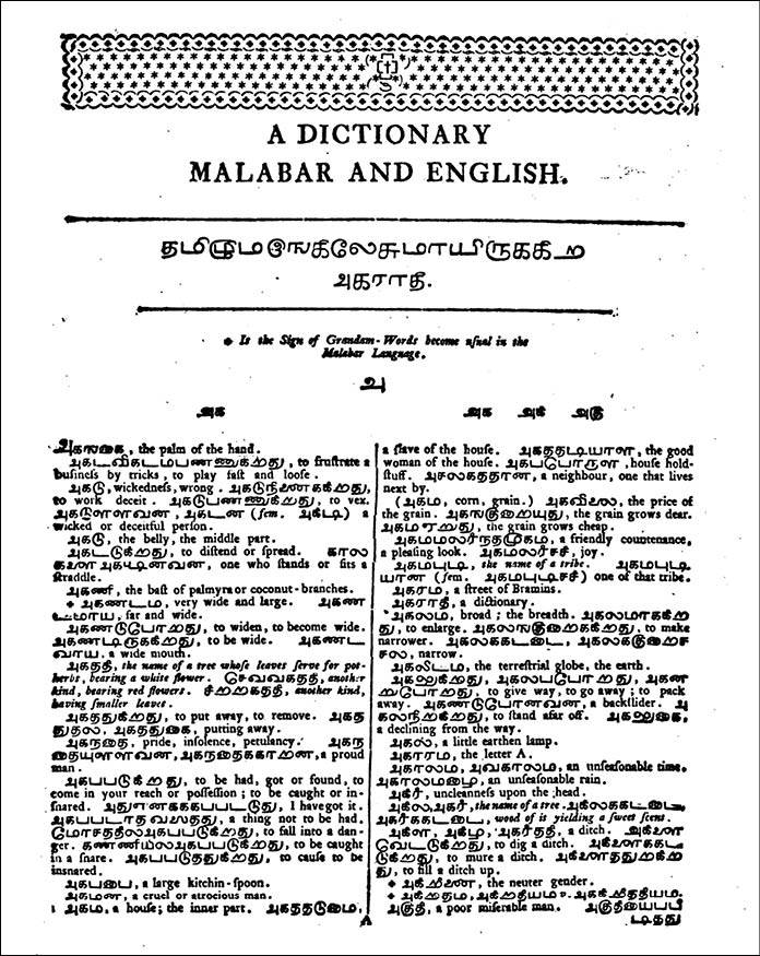 A Malabar and English Dictionary by J P Fabricius. Madras, 1779