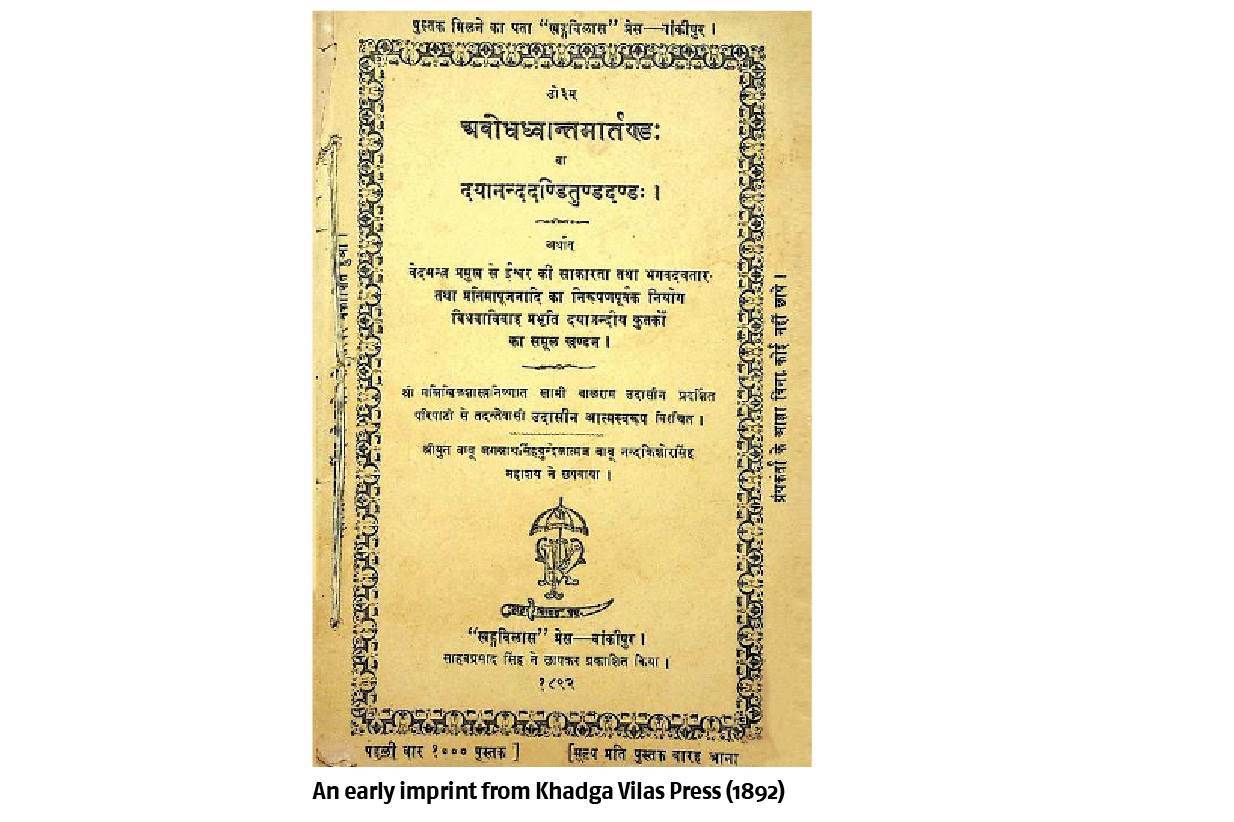 According to Dhirendranath Sinha, whose Adhunik Hindi ke vikas mein Khadga Vilas Press ki bhoomika [The role of Khadga Vilas Press in the development of modern Hindi] (Patna, 1986) is the only credible source of information on Khadga Vilas Press, its foundation inaugurated a new era in the history of Hindi language publishing and printing. Founded in 1880 in Patna, Khadga Vilas Press soon attained a pre-eminent status in the Hindi publishing world. Started at a time when Hindi was still being moulded into a literary language, Khadga Vilas Press played a seminal role in its development. For the first two decades of its existence, it was perhaps the only large printer and publisher of Hindi books east of