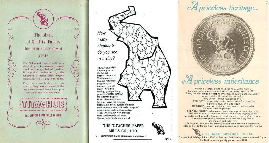 The Titaghur Paper Mills sold its paper under the ‘Elephant’ brand which soon became synonymous with paper in India. It was also used as a watermark on paper manufactured by the company. Its clients included provincial governments, railways, the princely states and many of the major printing presses. Though its management was largely European, its products — manufactured in India using Indian raw material and labour — were considered ‘Swadeshi’ and marketed as such by its dealers, in preference to imported paper.