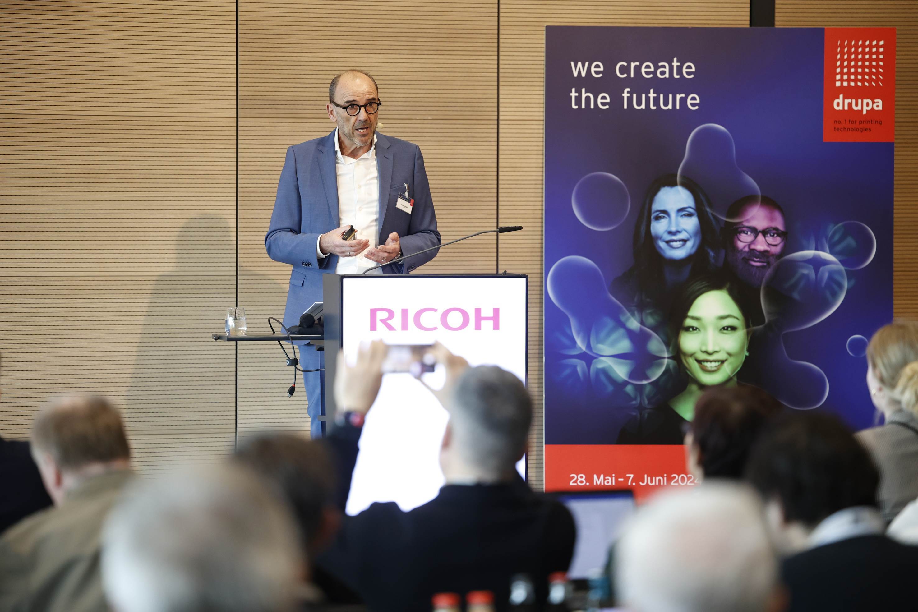 The head of commercial print operations EMEA at Ricoh Europe, Eef de Ridder, shared the company's plans for Drupa. Ricoh will introduce a new scalable workflow and production automation software solution that will streamline pre-press processes and reduce labour costs.