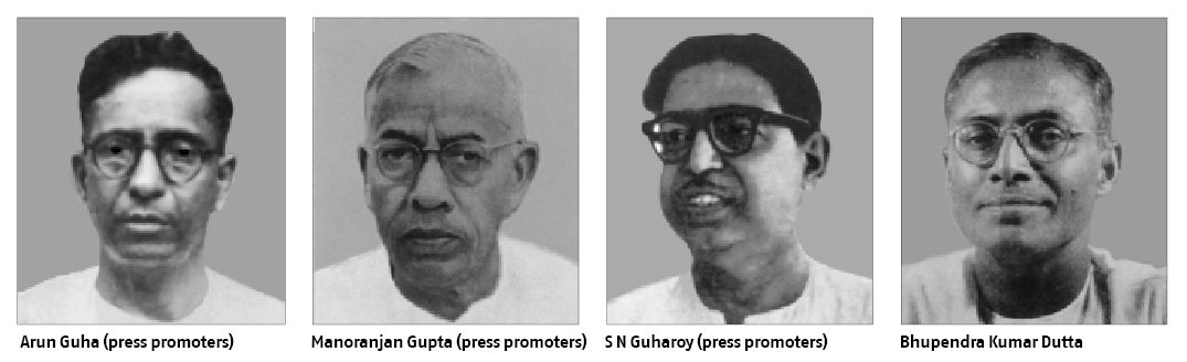 Coinciding with this expansion one of the original promoters, Arun Chandra Guha, became a member of the constituent assembly and later the state minister of finance of the Government of India and Sailendranath Guha Roy got engaged with the standards committee of the Government of India and various print associations.