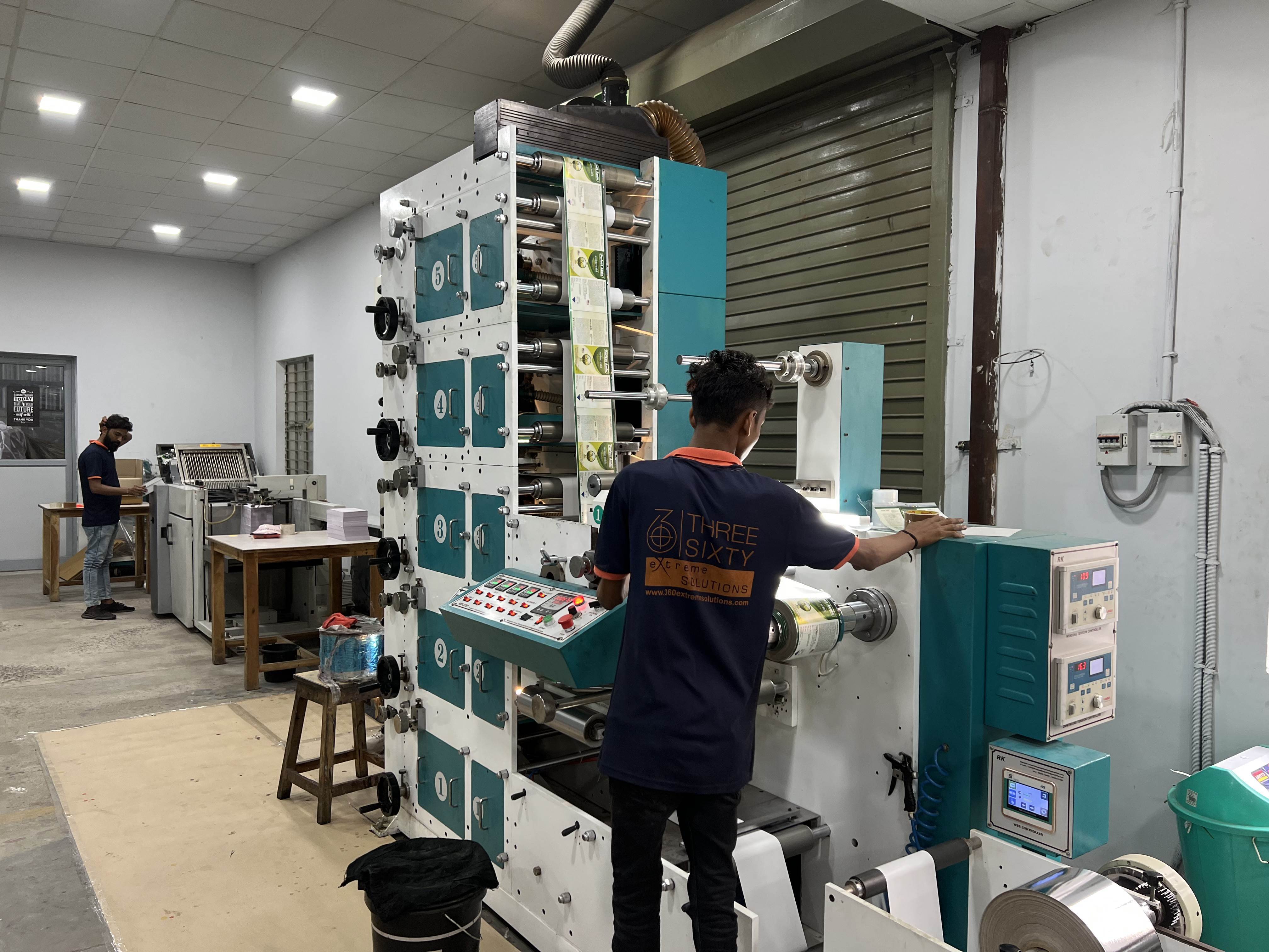 360 Extreme Solutions’ fleet of machinery includes two single-colour offset machines from Heidelberg; a five-colour (300-mm) and an eight-colour flexo machine (580-mm), both from RK Printing Company; one eight-colour rotogravure machine; a Rayobi two-colour machine; a cantilever slitting machine; an automatic core-cutting machine; an intermittent rotary punching machine; a solvent-based lamination machine; a gluing machine; two label cutting machines (450-mm and 300-mm); a label inspection with slitter machine; a Polar Microcut cutting machine; two Stahl folder machines and a folding machine from Pratham.