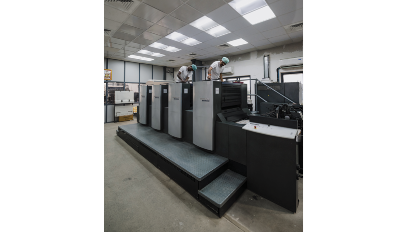The Heidelberg Speedmaster SX 74, the four-colour press at work at the Zaware Creative Enterprises plant