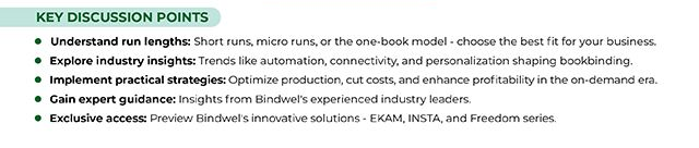 Whether you are a publisher grappling with inventory costs, a printer exploring on-demand options, or a supplier seeking to understand the evolving landscape, this 60-minute technical session will equip you with the knowledge and strategies to thrive in the dynamic world of bookbinding.